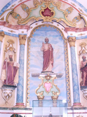 Olhando à nossa volta e na profundidade do Templo a cor e a luz das decorações e das respectivas imagens dos Santos deixam-nos deslumbrados, vejamos: